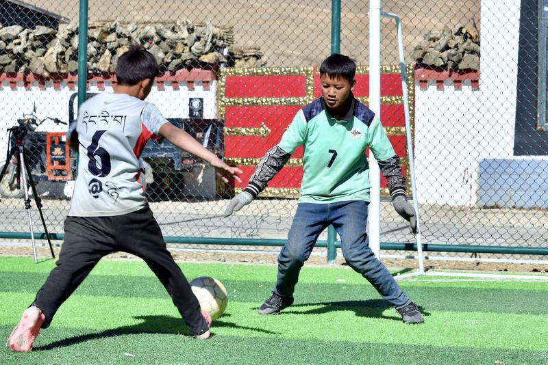 隆冬時節,海拔4000多米的定日縣長所鄉森嘎村,不見寒冬蕭瑟,反是一派熱氣騰騰的景象。嶄新的標準化足球場上,一顆足球在孩子們腳下靈動飛旋,清脆的歡笑聲穿透高原凜冽的寒風,響徹澄澈晴空。“這是我們村里第一個真正的足球場!”正在讀初一的阿旺洛旦漲紅了臉,興奮地吶喊。誰能想到,就在2025年1月7日,這里還滿是地震后的斷壁殘垣。如今,平整的操場成為孩子們奔跑追逐的樂園。寒風擋不住蓬勃的朝氣,每一次傳球、每一次射門,都迸發出滿滿的活力。場邊,孩子們的目光緊隨足球移動,加油聲、喝彩聲此起彼伏。足球不僅是一項運動,更成為連接彼此、凝聚人心的紐帶。奔跑的身影、綻放的笑容,映照出這片土地重生的生機與希望。嶄新的足球場,承載著嶄新的開始。在這片煥然一新的土地上,足球與笑聲一同飛旋,森嘎村正帶著蓬勃的朝氣與堅實的希望,邁向更燦爛的未來。