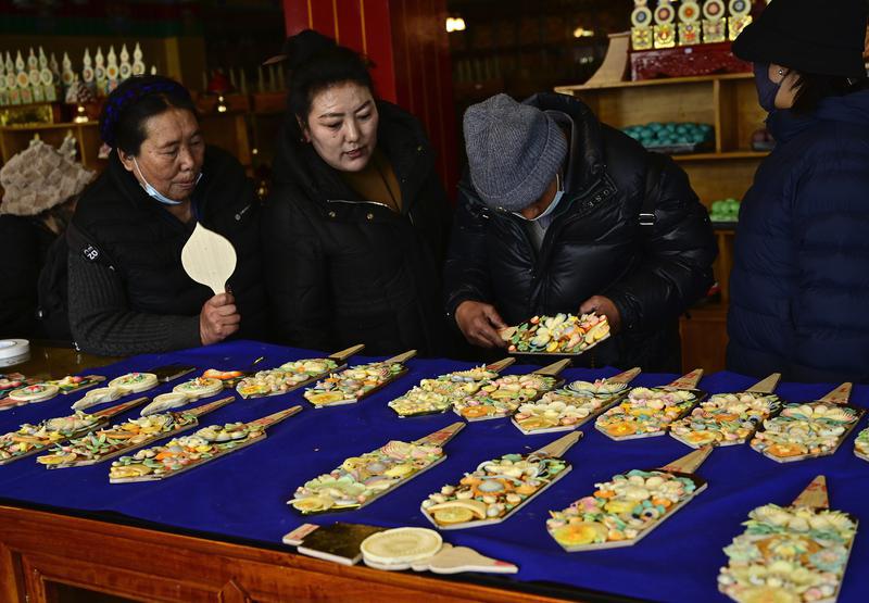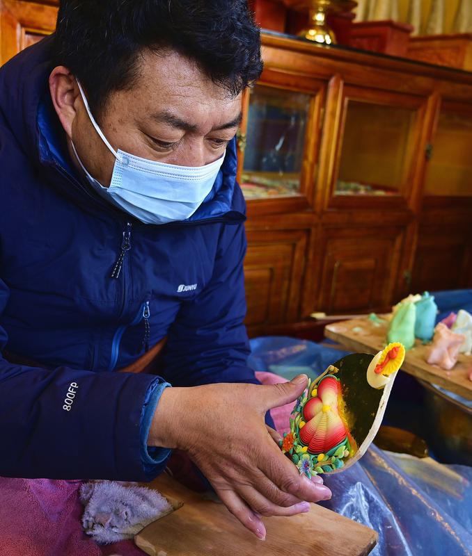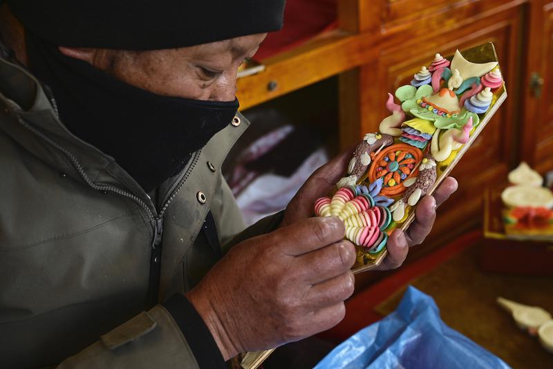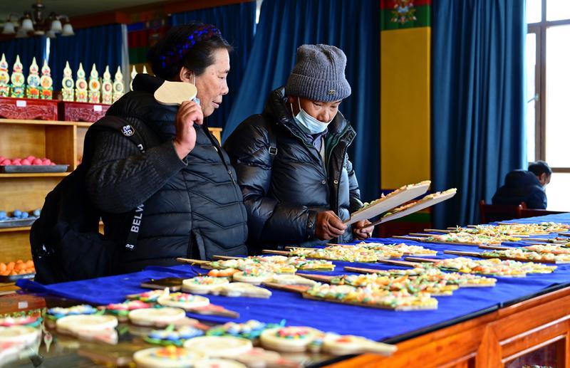 隨著藏歷新年的臨近,酥油花制作進(jìn)入高峰期。手藝人以家庭為單位,從仁布縣等地提前來到拉薩,在零下低溫中精心創(chuàng)作。他們將雙手反復(fù)浸入冰水塑形,以酥油為原料雕琢出蓮花、祥云等吉祥圖案,每一件作品色彩絢麗、栩栩如生,展現(xiàn)了藏族傳統(tǒng)工藝的精湛技藝。當(dāng)?shù)厝罕娂娂娗皝磉x購,為節(jié)日增添喜慶氛圍。今年,社交平臺(tái)的宣傳進(jìn)一步提升了酥油花的知名度,訂單量顯著增長。盡管店鋪每日加班趕制,仍供不應(yīng)求。酥油花不僅承載著新年祝福,更體現(xiàn)了傳統(tǒng)技藝的傳承與創(chuàng)新,成為年貨市場中的文化亮點(diǎn)。