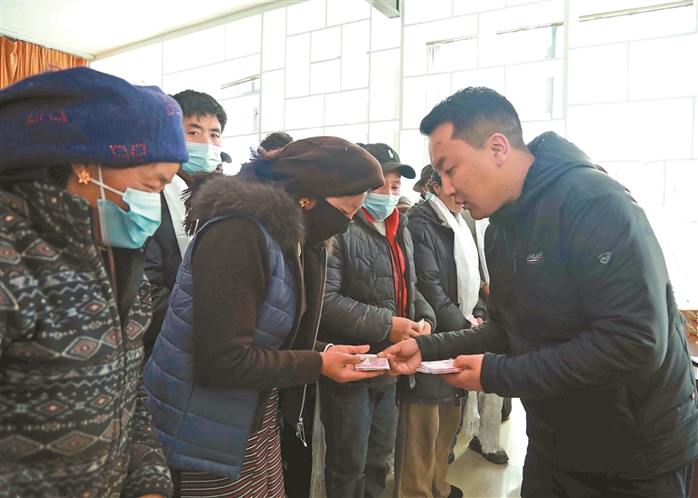 圖為工作人員為群眾發放慰問金。記者 格桑倫珠 劉琳琳 攝