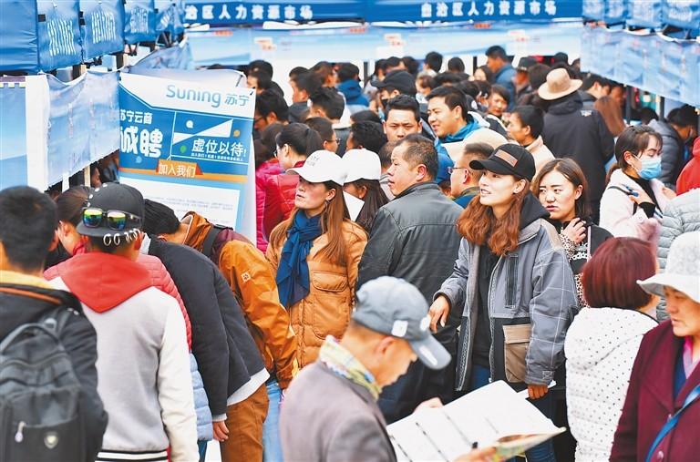 求職者在人力資源洽談會現場了解崗位信息。記者 旦增西旦 攝