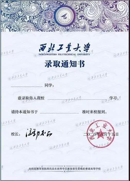 西北工業大學錄取通知書:從一張紙成為可以收藏的藝術品