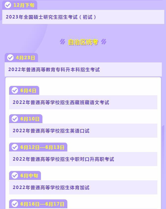 西藏2022年教育考試月歷,趕緊收藏!