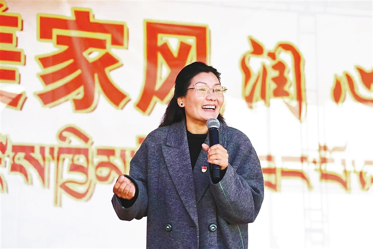 圖為卓瑪開展家庭教育家庭美德宣講現(xiàn)場(chǎng)。
