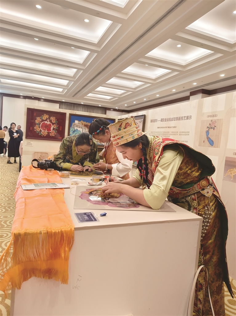 林芝市職業(yè)技術學校“藏韻金絲掐絲琺瑯畫”應邀參加職業(yè)教育優(yōu)秀非遺教學成果展。圖由林芝市職業(yè)技術學校提供