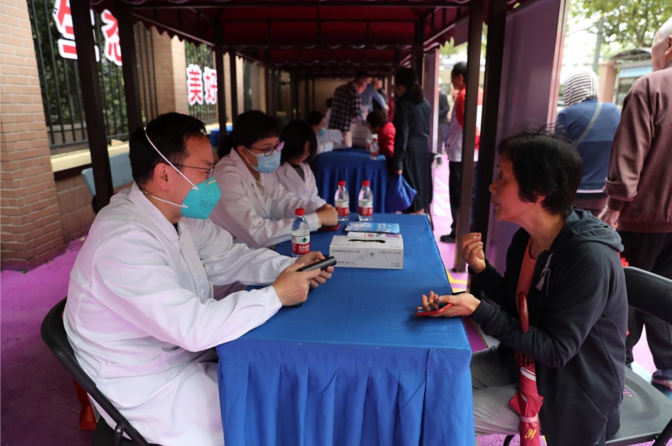 在外場義診活動中,來自上海交通大學(xué)醫(yī)學(xué)院附屬第六人民醫(yī)院、復(fù)旦大學(xué)附屬眼耳鼻喉科醫(yī)院、上海中醫(yī)藥大學(xué)附屬龍華醫(yī)院、徐匯區(qū)牙病防治所以及上海市胸科醫(yī)院的多名專家共同為到場居民進(jìn)行現(xiàn)場診療,并提供健康咨詢。剛做完口腔檢查的陳阿姨告訴記者,“今天來的都是大醫(yī)院的專家,不用特地去醫(yī)院就能做到這么多種檢查,還解答我們的問題,我們都覺得很高興。”