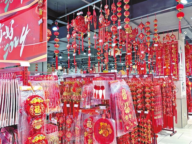 走進(jìn)那曲市互惠互利超市,映入眼簾的是年畫、對(duì)聯(lián)、燈籠、福字等節(jié)日用品;豐富多樣的糖果餅干,種類繁多的飲品;新鮮肉類水產(chǎn)品……各類商品一應(yīng)俱全,超市內(nèi)人頭攢動(dòng)。正在選購飲品的市民達(dá)珍說:“在這里購買年貨很方便,貨品很齊全。我買了不少水果、蔬菜,還有各種肉類熟食,再選點(diǎn)飲料零食,到時(shí)候就可以準(zhǔn)備一桌豐盛的年夜飯,和家人一起迎接新的一年。”