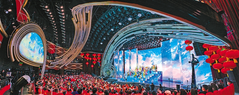 圖為來自昌都市康巴文化藝術團的演員們登上中央廣播電視總臺2024年春節聯歡晚會的舞臺,在節目《永恒的詩篇》中熱情放歌。向巴曲增 攝