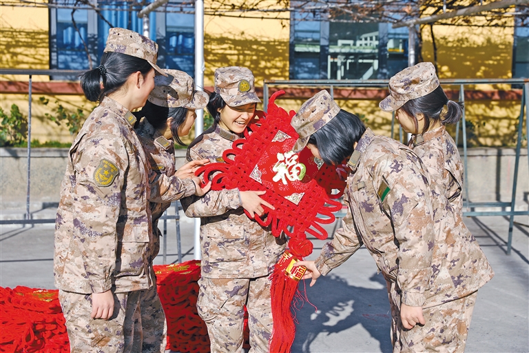 圖為昌都軍分區某團官兵寫春聯、掛燈籠、貼福字,軍營洋溢著濃濃年味。本網通訊員 任從光 攝