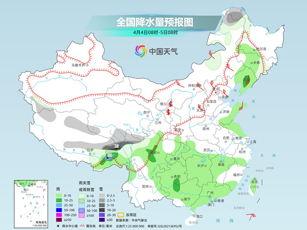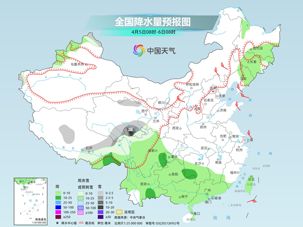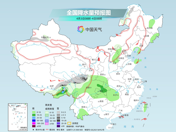 中央氣象臺預計,今天,新疆沿天山一帶和南疆西部山區、內蒙古東北部、西藏東部、青海東南部、川西高原北部等地部分地區有小到中雪或雨夾雪,其中,西藏東北部、川西高原北部等地部分地區有大雪。吉林東部、遼東半島、山東半島、山西中北部、西藏東南部、甘肅南部、陜西南部、西南地區東部、江南西部、云南南部、臺灣島等地部分地區有小到中雨,其中,西藏東南部部分地區有大雨。