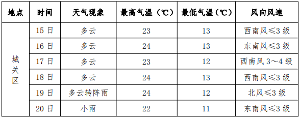 周一至周五:我市大部多云,部分時(shí)段有分散性陣雨或雷陣雨;