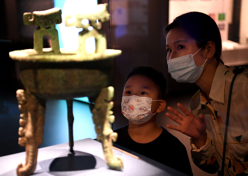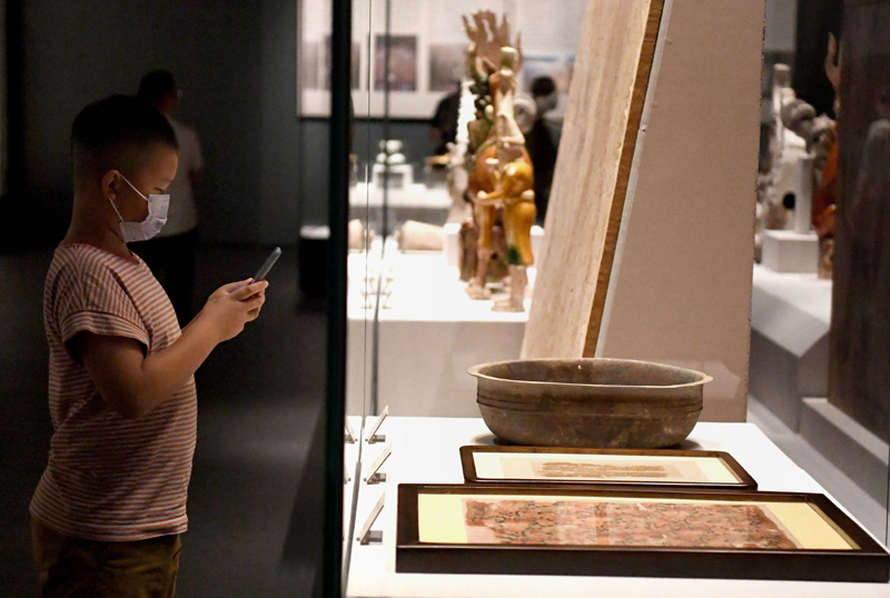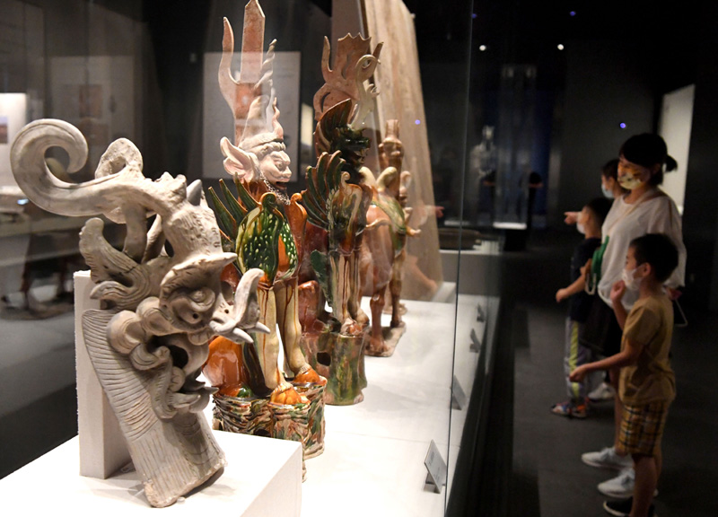9月10日,在鄭州博物館文翰街館,市民參觀“繁星盈天——中國百年百大考古發現展”。
