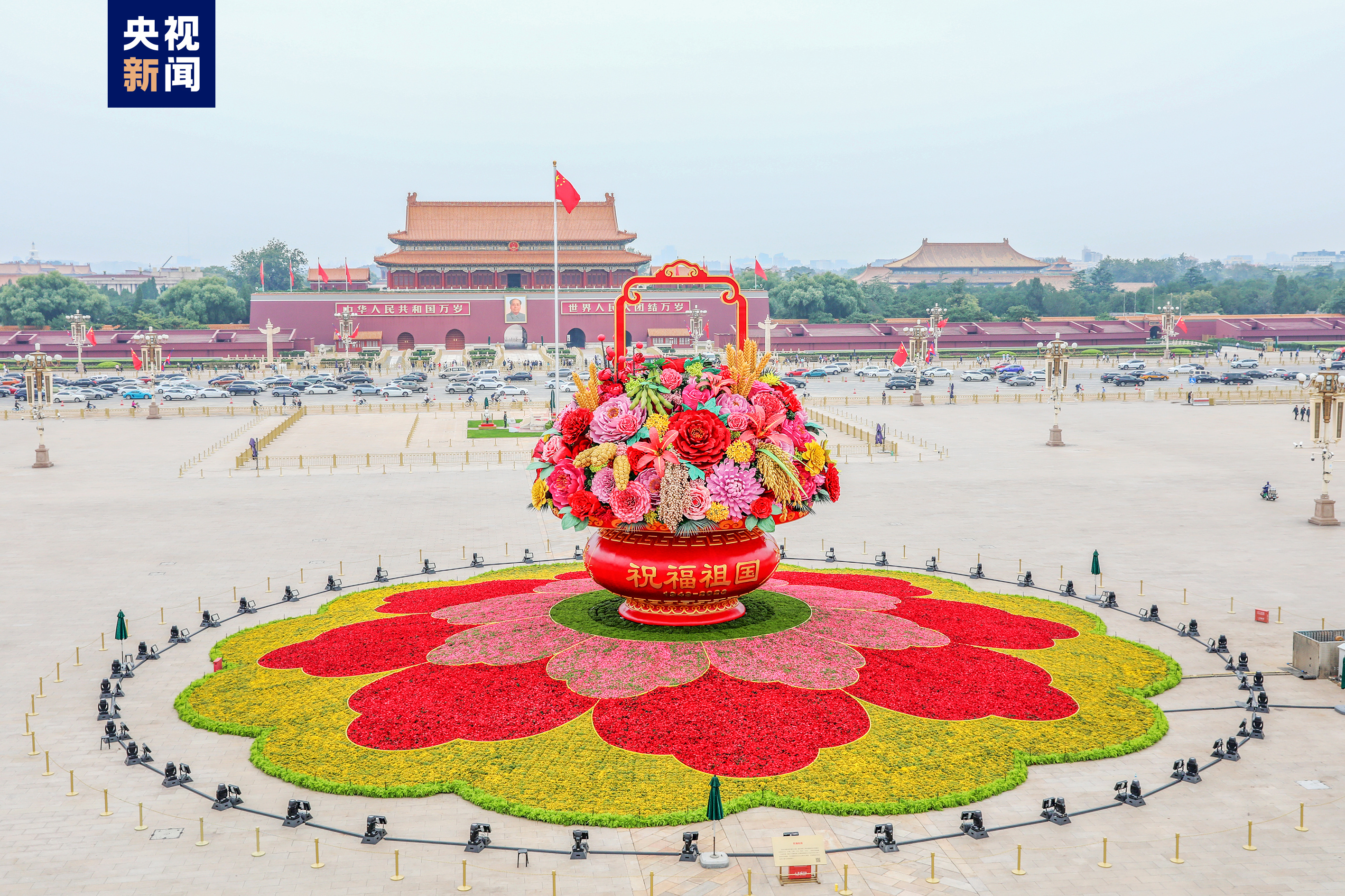 記者從北京市園林綠化局了解到,9月25日,“祝福祖國”巨型花籃亮相天安門廣場。長安街等重要區域綠化布置也同期完工。
