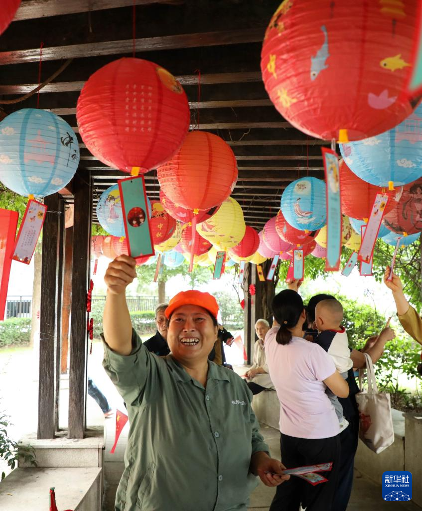 9月26日,人們在安徽省合肥市肥西縣上派鎮潭沖社區猜燈謎。?新華社發(陳家樂攝)