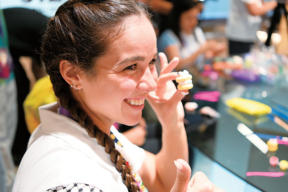 ▲9月29日,巴勒斯坦運動員夫萊里·塔拉齊在亞運村展示自己制作的“玉兔”。當日是中秋佳節,亞運村內各個國家和地區的運動員、官員及媒體記者,在村里一起賞燈、品茗、看演出、吃月餅。新華社記者徐嘉懿攝