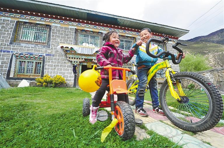 圖為林芝市朗縣洞嘎鎮的孩子們在自家大院內快樂玩耍。 記者 旦增西旦 攝