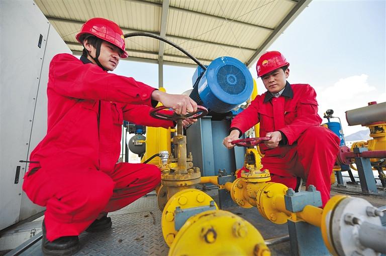 圖為位于拉薩經開區的昆侖能源西藏有限公司的工人在檢查設備。記者 旦增西旦 攝