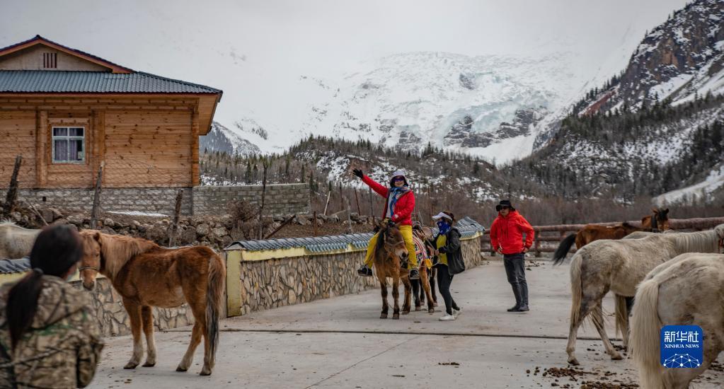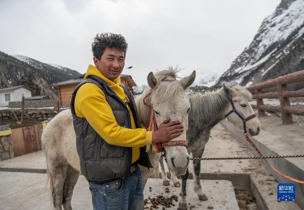 新華社拉薩4月24日電(記者格桑邊覺、孫非)“慢慢來,別摔了。”28歲的江阿羅布把一名游客扶上馬,帶他前往離村不遠(yuǎn)的米堆冰川參觀。