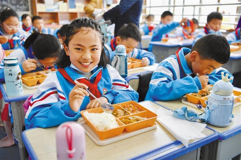 圖為拉薩市實驗小學東城分校小學生在享用營養午餐(5月12日攝)。記者 張汝鋒 攝