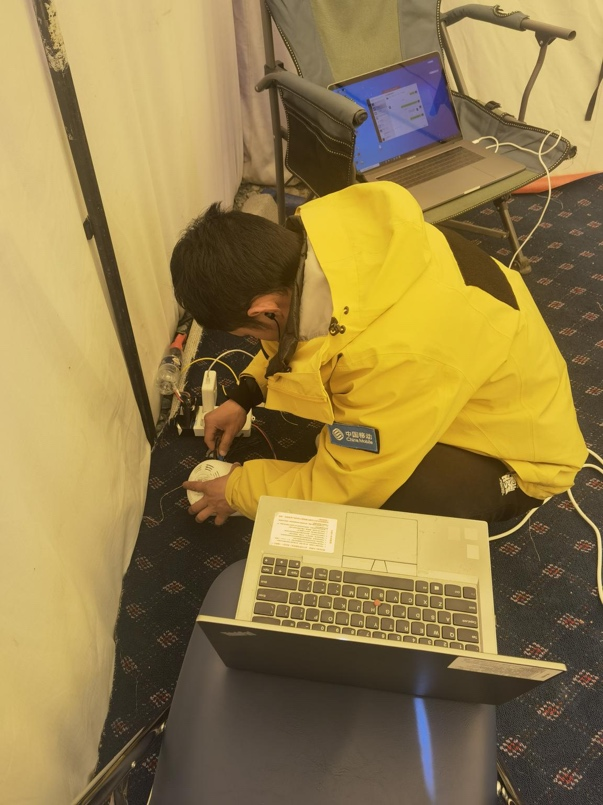 中國移動和華為公司“科考直播保障”項目技術人員開展數據調測