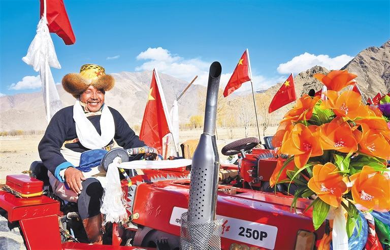 拉薩市曲水縣春耕開耕儀式上,村民準備駕駛拖拉機犁出新年第一塊地。在黨和政府的大力支持下,當地農業走上機械化發展道路。經濟日報記者 代 玲攝