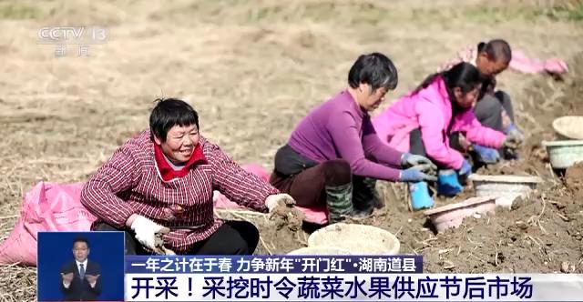 在湖南道縣,種植基地也迎來新春首開工。您現在看到的是當地貴頭村的村民們正在采挖慈姑和芋頭等時令蔬菜。春節假期后一上班,村民們就為收獲忙碌著,保障元宵節市場供應。