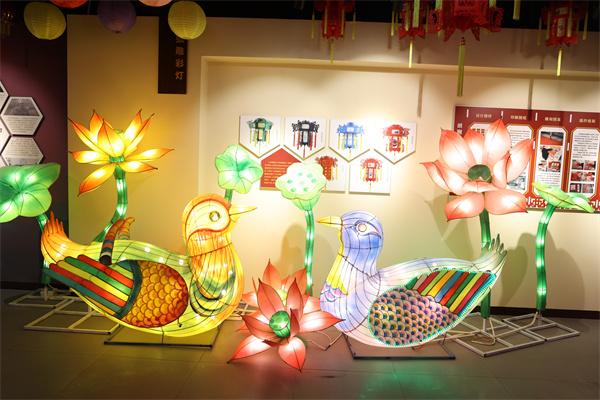屯頭宮燈博物館中展覽的花燈。人民網 周博攝