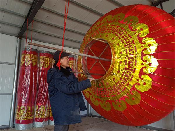在69歲的宮燈制作手藝人白軍平家中,一盞直徑6米的超大宮燈已經制作完成,正準備發貨。白軍平撐起一盞直徑2.5米的紅色燈籠,仔細調試。他笑呵呵地說:“現在大家都會做普通的紅燈籠,我就得不斷研究,做一些別人做不來的,才能賣上好價錢。”