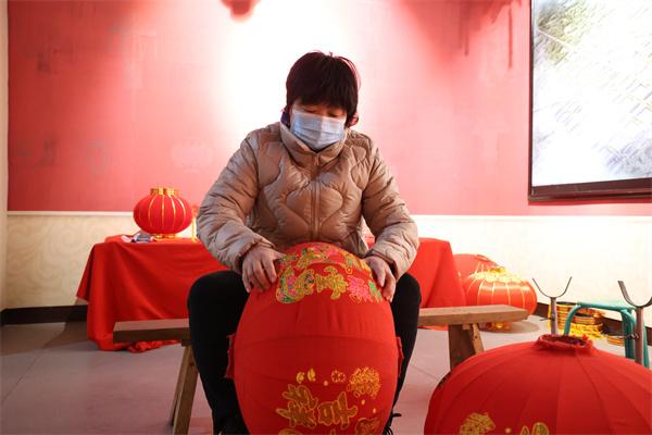 “劈、刮、打眼、穿絲,竹子做骨架,做出來的紅紗燈布薄如紗、透亮通紅。現在改進了工藝,主架用鋼絲,更加耐用。”制作燈籠30余年的屯頭村村民張會娟,一邊把燈籠在手上飛快翻轉,一邊介紹著制作工藝。