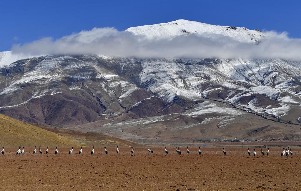 黑頸鶴是國家一級保護動物,主要棲息在海拔2500米至5000米的高原、草甸、沼澤地帶。拉薩北部的林周縣平均海拔約4200米,是黑頸鶴的主要越冬地之一。