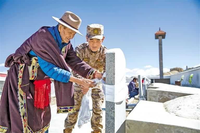 圖為軍民代表在阿里地區札達縣烈士陵園緬懷革命烈士。劉曉東 記者 次仁平措 攝
