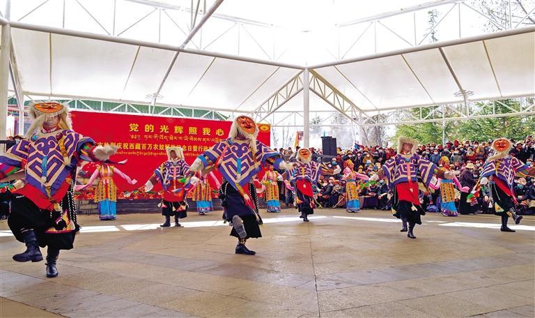 連日來,拉薩市城關區、堆龍德慶區,山南市瓊結縣、那曲市班戈縣分別舉行紀念西藏百萬農奴解放64周年文藝表演。優美的歌聲、熱情的舞步,不時贏得在場觀眾的陣陣喝彩。看完演出,群眾益西旦增激動地說:“64年來,西藏發生了翻天覆地的變化,我們的生活越來越好,大家從內心深處感謝黨和國家。”