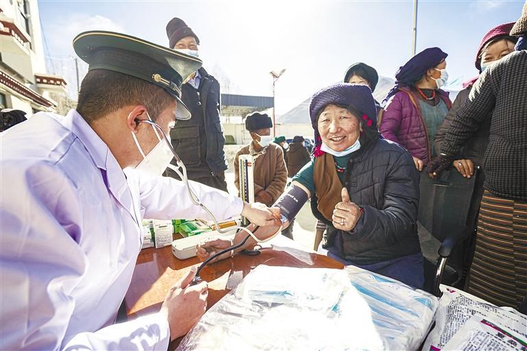 武警西藏總隊拉薩支隊深入拉薩市墨竹工卡縣巴洛村開展惠民問診活動。