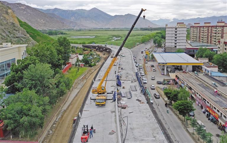 拉薩市北環路與藍天路改造工程項目全長1314米,涉及的北環路改造范圍,西起當巴社區居委會西側,東至北京西路交叉口北側。作為拉薩市主干道路之一,該項目主要解決藍天路與北環路交通擁堵問題,對推進拉薩城市發展、完善城市骨干路網、緩解中心城區交通擁堵以及提升城市形象具有十分重要的作用。目前道路橋梁主體建設已完成,計劃今年10月建成通車。