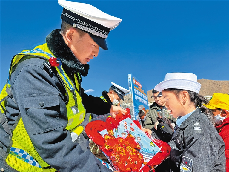 12月2日上午,由自治區公安廳、拉薩市委宣傳部、拉薩市公安局主辦,自治區公安廳交管局、拉薩市文明辦、拉薩市公安局交警支隊等單位承辦的“全國交通安全日”主題宣傳活動在拉薩舉行。活動中,民警向群眾發放《關愛生命、文明出行》《電動車宣傳手冊》等宣傳資料約15萬余份,引導群眾文明出行。