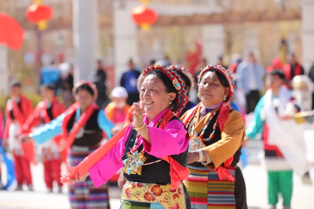 3月28日上午,日喀則市各族各界人士齊聚一堂,滿懷深情紀念西藏民主改革65周年。一大早,各族干部群眾身著節日盛裝,開展以“叫我們怎么不歌唱”為主題的群眾聯歡活動,大家揮舞著國旗、哈達,盡情地歌舞,表達心中的喜悅。