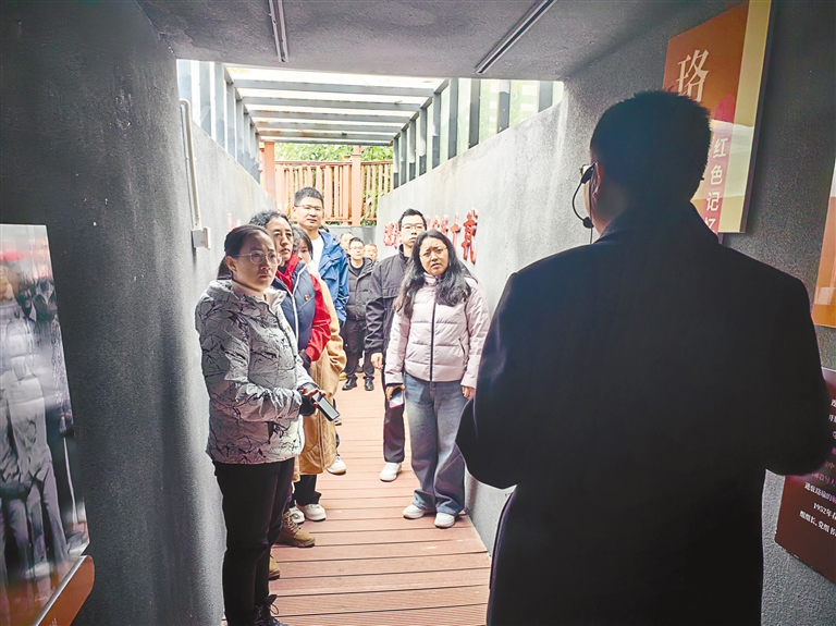 圖為墨脫縣委辦黨支部一行人參觀墨脫解放發展歷程“時光長廊”。記者 王珊 謝筱純 攝