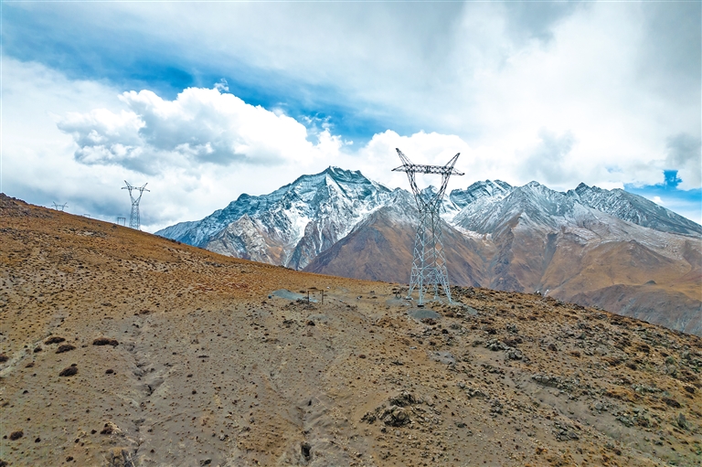 位于雅魯藏布江流域的拉薩市尼木縣新能源110千伏送出工程電力鐵塔。
