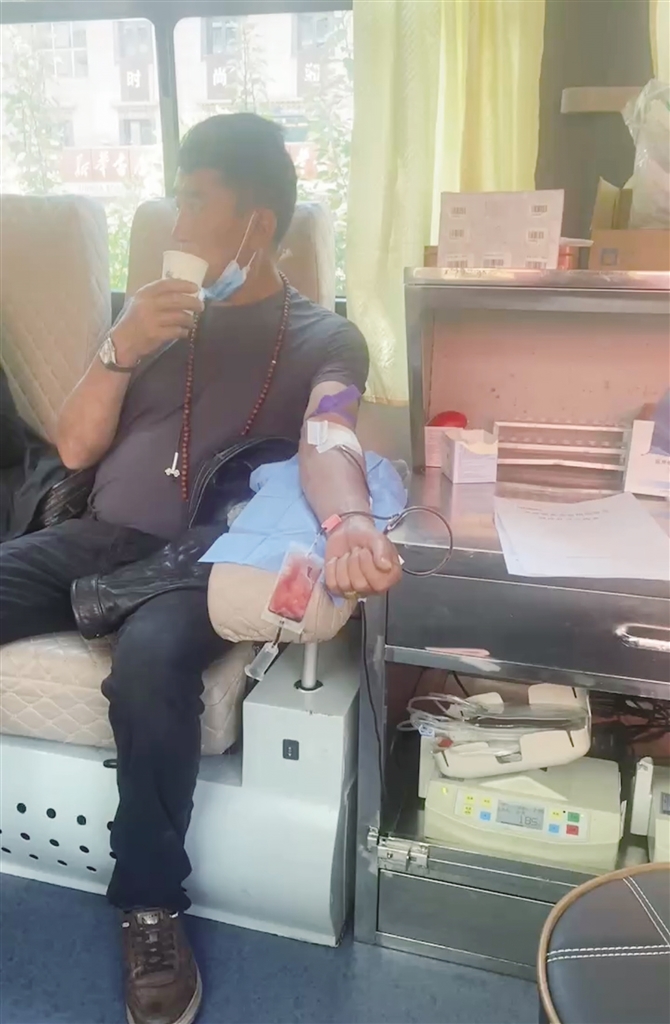 23日上午,記者在宇拓路獻血點看到,村民們正排隊等待獻血。當天,大家捐獻了近4000毫升血液。今年55歲的堅才捐獻了300毫升血,他說:“這些年里,朗杰一直在救治家畜,每次都是隨請隨到,非常熱心,這次應該換我們為他付出。”
