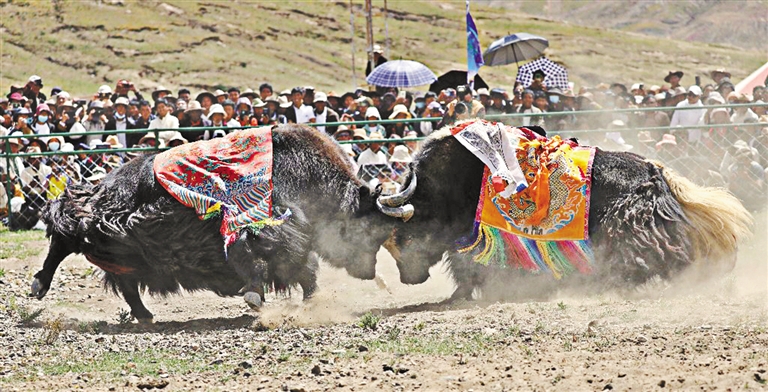 9月6日,白朗縣者下斗牛暨全民健身特色品牌活動(dòng)在白朗縣者下當(dāng)木雄草原開幕。為期5天的活動(dòng)中,除數(shù)羊頭和斗牛比賽外,還設(shè)置了長跑、搶凳子、拔河、抱石頭等活動(dòng)。據(jù)了解,白朗縣者下斗牛活動(dòng)已有近600年歷史,2010年入選《自治區(qū)級(jí)非物質(zhì)文化遺產(chǎn)名錄》。