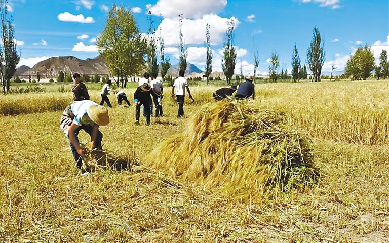 圖為參賽群眾參加青稞收割比賽。 記者 扎西頓珠 攝