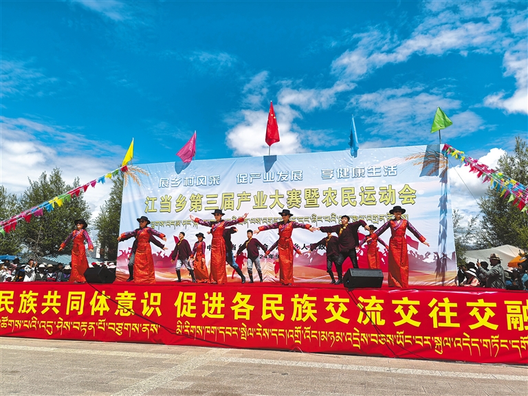 為豐富群眾的精神文化生活,營造全民健身運動的良好氛圍,9月7日,桑珠孜區江當鄉舉辦了為期2天的第三屆產業大賽暨農民運動會。活動主要以各村文藝演出、鄉村產業大賽與產品展銷展示、農牧民傳統趣味比賽三大項;挖掘機技術比賽、奶牛產奶量比賽、黃牛改良點配種員評比、翻滾筒、穿輪子比賽等16個子項組成。
