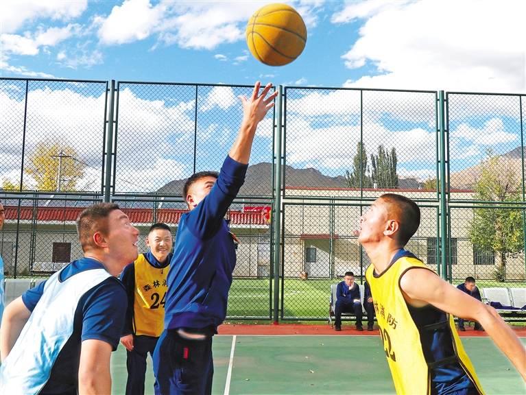 圖為西藏森林消防總隊新訓大隊開展籃球比賽。 記者 劉倩茹 攝