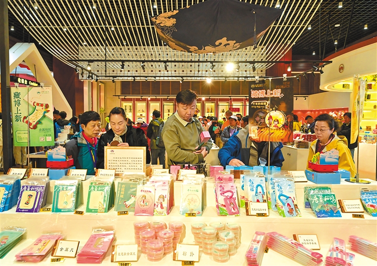 市民、游客在西藏博物館選購文創產品。記者 唐斌 攝