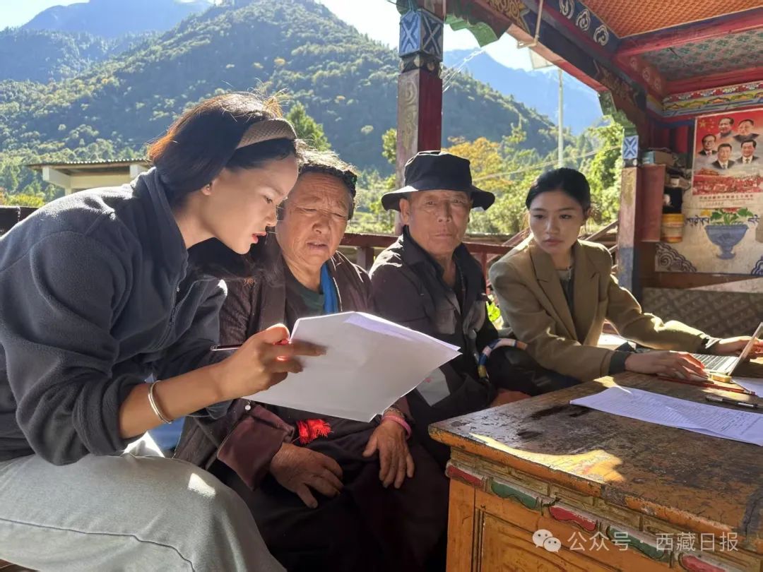 圖為林芝市墨脫縣格當(dāng)鄉(xiāng)駐村干部正在進(jìn)行經(jīng)濟(jì)數(shù)據(jù)統(tǒng)計(jì)。記者 王敏 通訊員 郎玲 攝