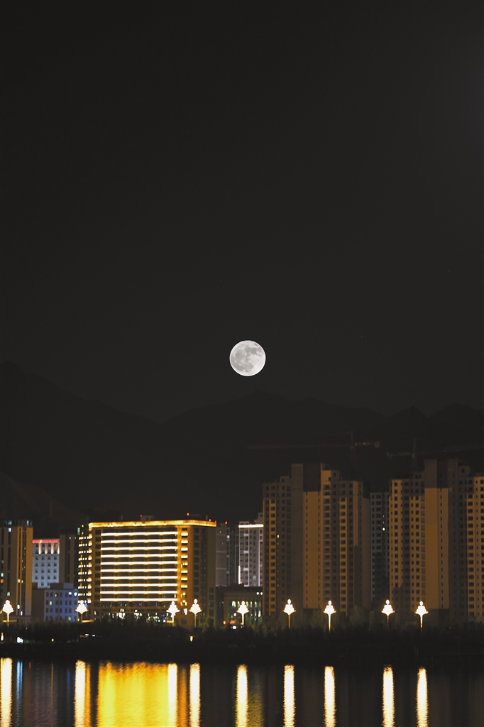 圖為6月11日在西藏自治區(qū)拉薩市拍攝的滿月。記者 洛桑平措 攝