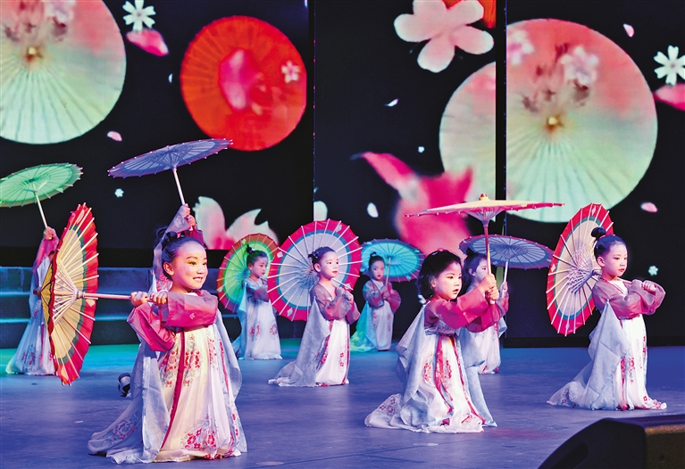 圖為拉薩市實驗幼兒園東城分園中班年級舞蹈隊表演的舞蹈《百舞驚鴻》。記者 旦增蘭澤 攝