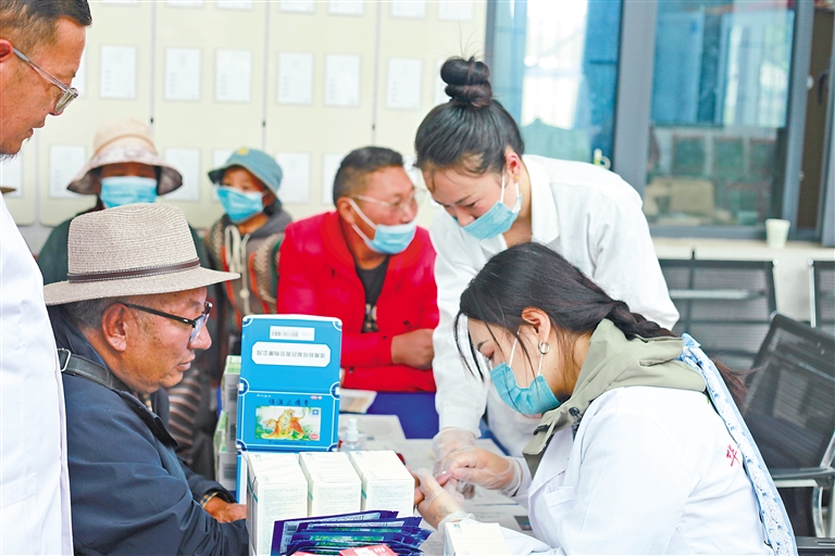 近日,那曲市色尼區達薩鄉央扣村駐村工作隊對接兩家藥企在該村開展“送醫送藥送健康”志愿服務活動。工作人員為農牧民群眾耐心細致解答健康問題、宣講健康知識、開展疾病預防科普,切實提升農牧民群眾健康意識和自我保健能力。