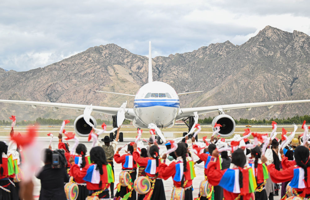 中共中央總書記、國家主席、中央軍委主席習近平率中央代表團20日中午乘專機抵達拉薩,出席西藏自治區成立60周年慶祝活動。習近平等在機場和拉薩市區受到西藏各族群眾的熱烈歡迎。
