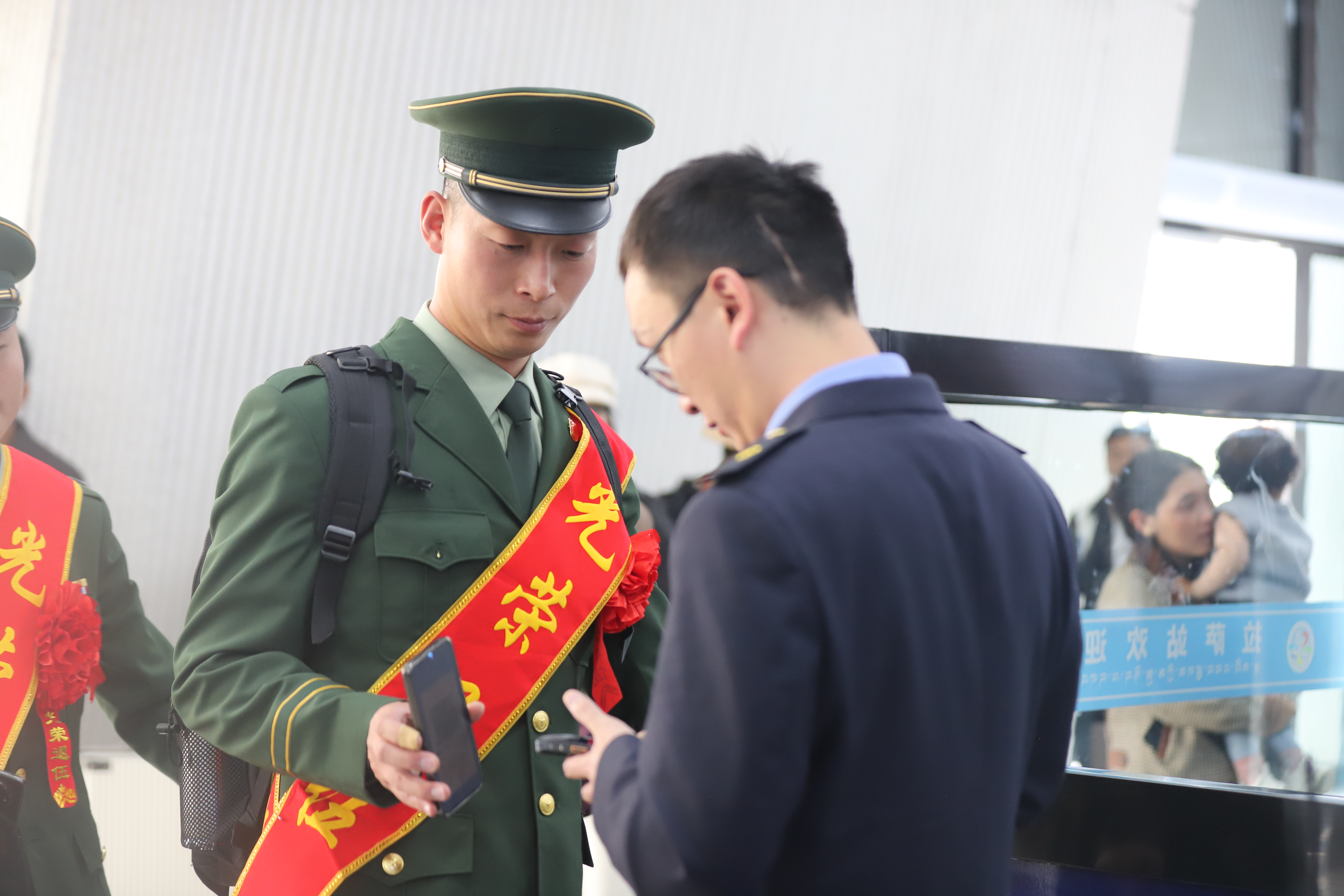 拉薩火車站在購票、安檢、候車、乘車等方面為軍人開辟了綠色通道,確保他們能夠享受到優先、便捷的服務,讓軍民情誼在雪域高原上像酥油茶一樣,越熬越香、越煮越濃。