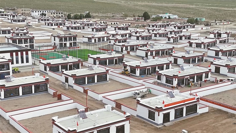 走進新建村落,寬敞明亮的新居排列整齊,水、電、路、網、通信全面入戶,文化活動中心、籃球場等配套設施一應俱全,實現了“住有所居”到“住有優居”的變化。(記者 扎西頓珠 通訊員 巴桑 攝)